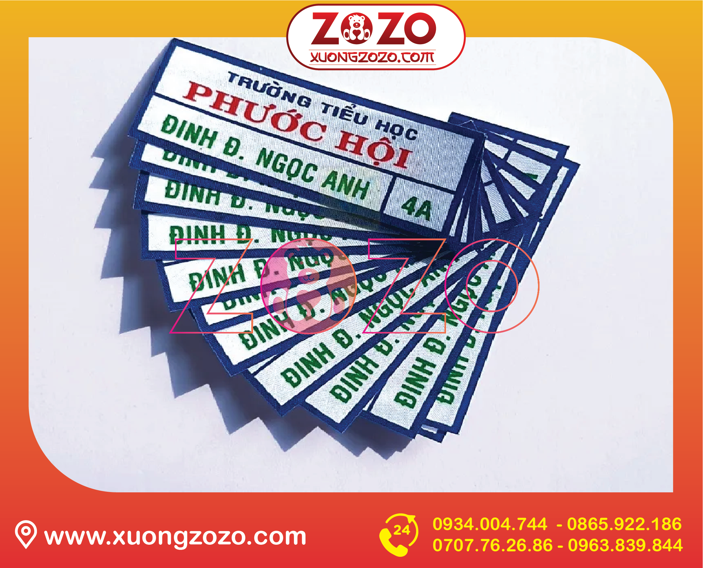 Bảng tên học sinh ép keo là nhãn vải in hoặc thêu thông tin như tên học sinh, lớp, logo trường, hoặc tên trường, được phủ lớp keo nhiệt ở mặt sau, cho phép gắn lên áo đồng phục bằng cách ép nóng (bàn ủi hoặc máy ép nhiệt) trong 7–10 giây. Sản phẩm này dễ tháo rời, tái sử dụng, và phù hợp với môi trường học đường nhờ độ bền cao và tính thẩm mỹ. Xưởng Cờ ZOZO sử dụng công nghệ in chuyển nhiệt 3D, in lụa, và thêu vi tính, kết hợp vải chất lượng cao như polyester, kate trắng, hoặc satin, đảm bảo bảng tên sắc nét, bền màu, và tiện lợi.